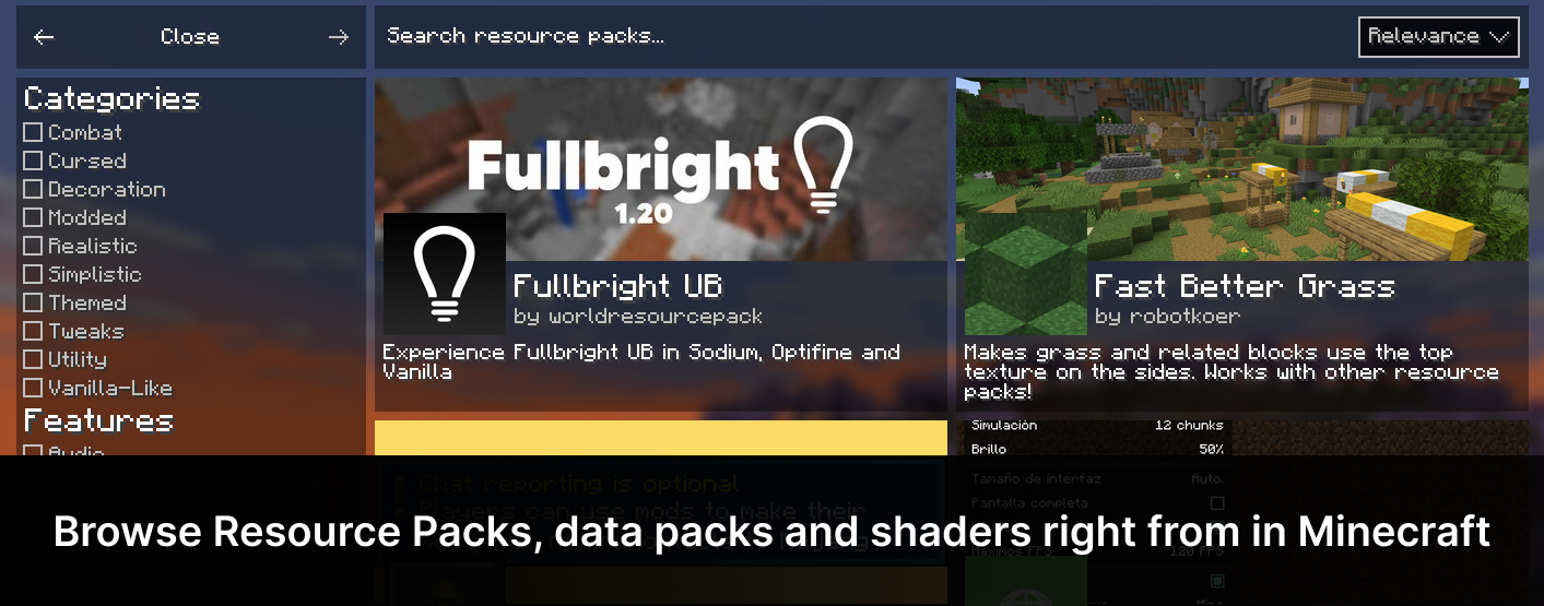 3. Добавляет возможность скачивать ресурспаки и шейдеры прямо в игре.
